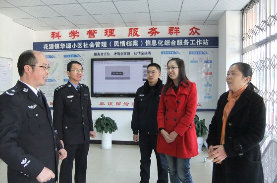 随后,调研组一行参观了新津县花源镇华源小区一家人群众工作室。社区服务办车丹丹主任给调研组讲解了一家人群众工作室工作职责、运作模式及小区“1+3”自治组织结构,并重点介绍了“服务全方位、矛盾全掌握、社情全摸清”的社会管理(民情档案)信息化综合服务工作站。优秀社区经理宋玉芳还详细介绍了社区工作实务过程中遇到的一些问题及解决对策,并指出“百姓事情无小事,热心服务为社会”。