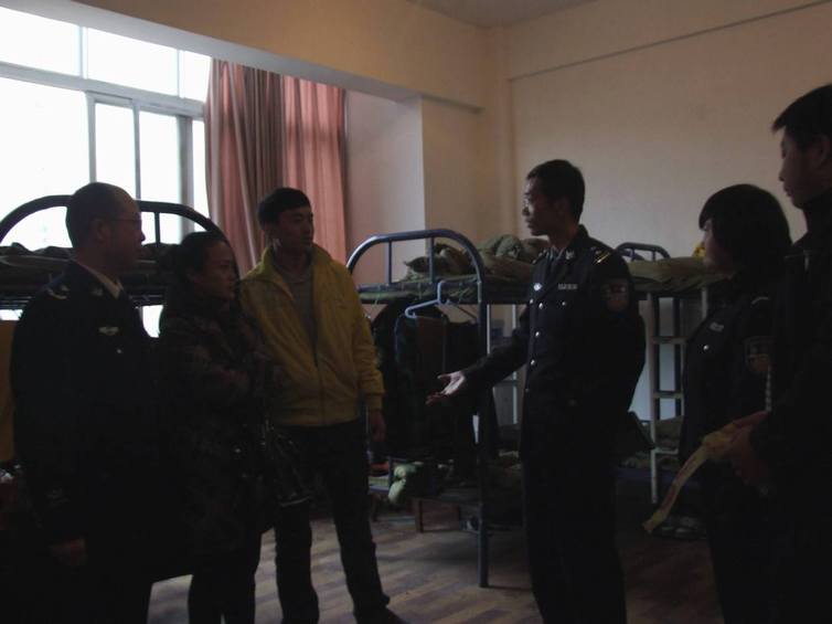 2011年12月16日法学系党总支书记李英文、副主任李士虎一行,到青白江司法局、郫县公安局检查实习情况、看望实习学员。