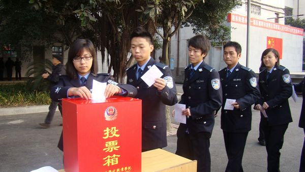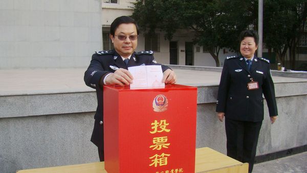 12月10日上午,四川司法警官职业学院举行德阳市旌阳区第四届人民代表大会代表选举大会。学院2300多名选民满怀当家作主的热情,积极行使了宪法和选举法赋予的民主权利,参加了选举大会,投下了自己庄严的一票,圆满成功的完成了投票选举工作。学院党委书记何华、副书记刘志刚、副院长陈志林、副院长张大立、纪委书记刘晋川、政治部主任李灿、工会主席李益民等院领导以普通选民身份参加了选举。