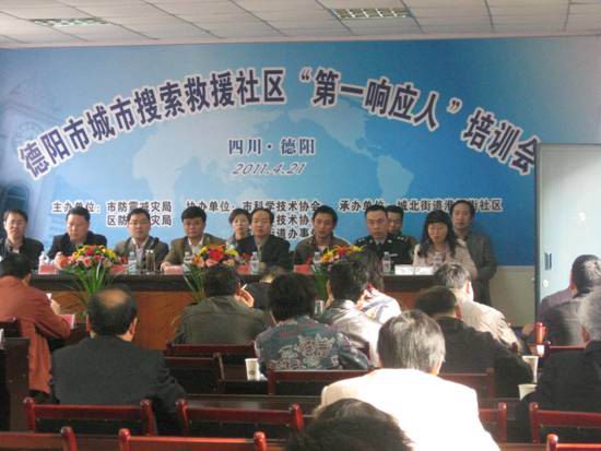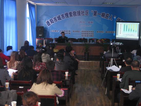 来自德阳市各县市防震减灾局、省市防震减灾科普示范社区、城北街道办淮河街社区辖区内各单位代表共计60余人参加了此次培训。此次培训的目的是为了使社会基层-----社区有更多的人“第一响应人”的基本知识,懂得了当灾害发生后,第一时间在灾区开展应急响应和救援,提高防灾救灾意识和应急救援能力、搜索救援能力、现场管理能力、灾情评估能力等。这对基层正确应对公共突发事件和自然灾害,减少伤亡和损失有重要的意义。据悉,在社区开展“第一响应人”相关知识技能的培训,这在我省尚属首次。