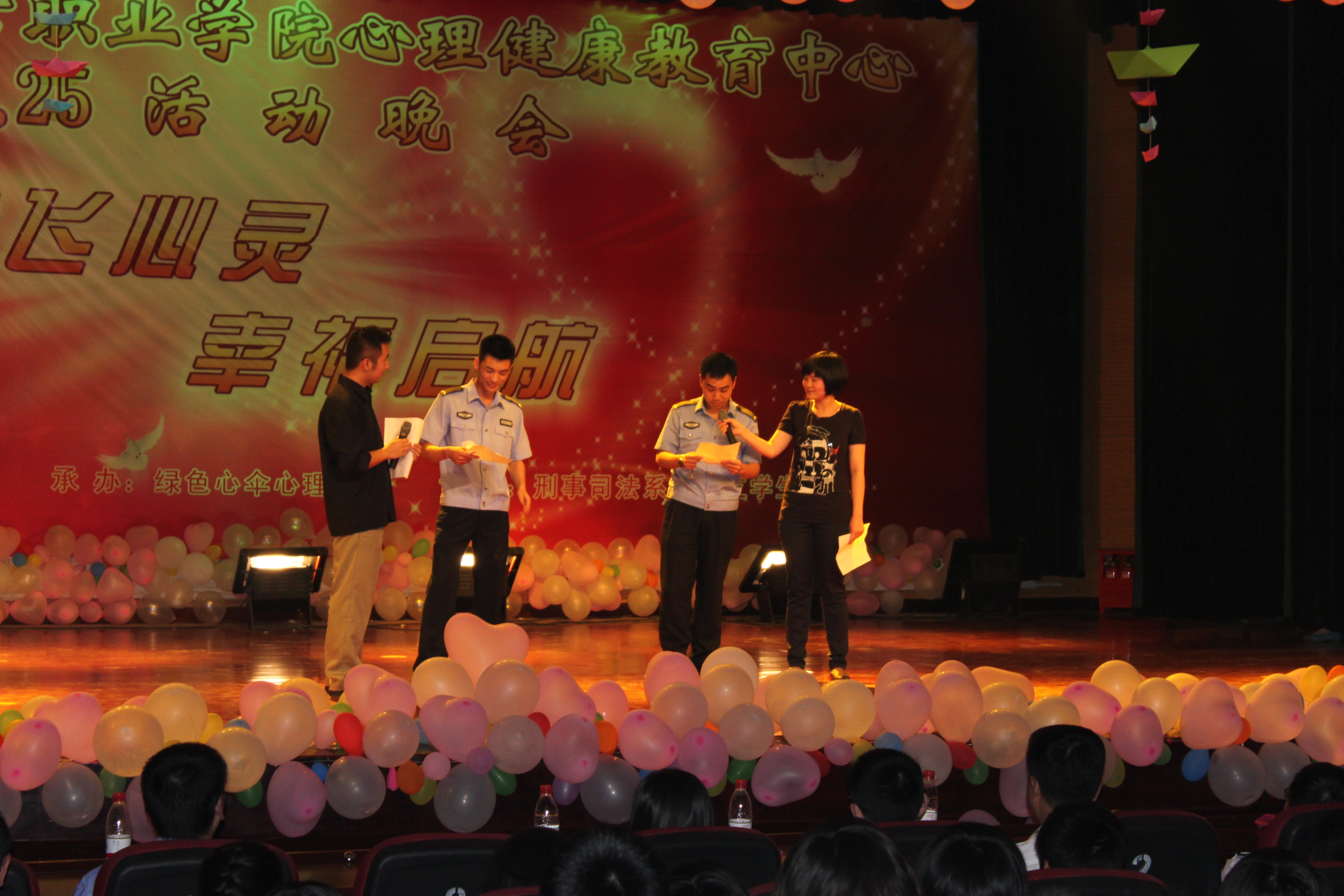 2011年5月25日晚,四川司法警官职业学院学生心理健康教育工作表彰大会暨文艺晚会在北校区礼堂隆重举行,掀起了今年“5·25”心理健康教育周系列活动的高潮。学院党委副书记刘志刚同志出席会议,学生处、团委、各系部有关负责人、心理健康教育专兼职教师和学生代表参加了大会。