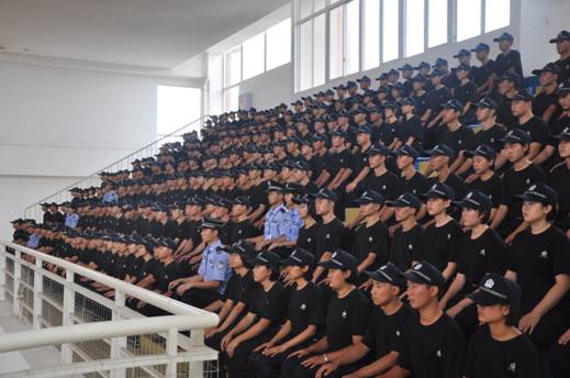 开学典礼暨新生军训动员大会在军乐队演奏的雄壮的《人民警察之歌》中结束。
