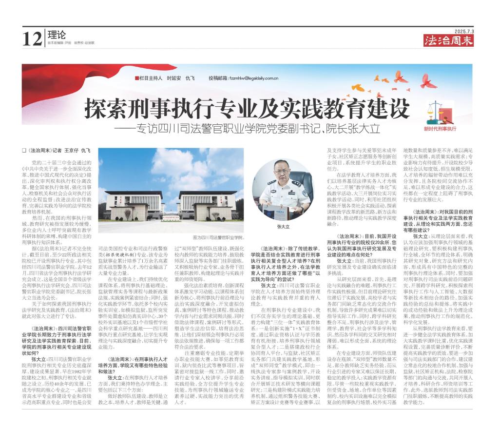 张大立:四川司法警官职业学院在人才培养方面始终坚持理论教育与实践教育并重的育人理念。