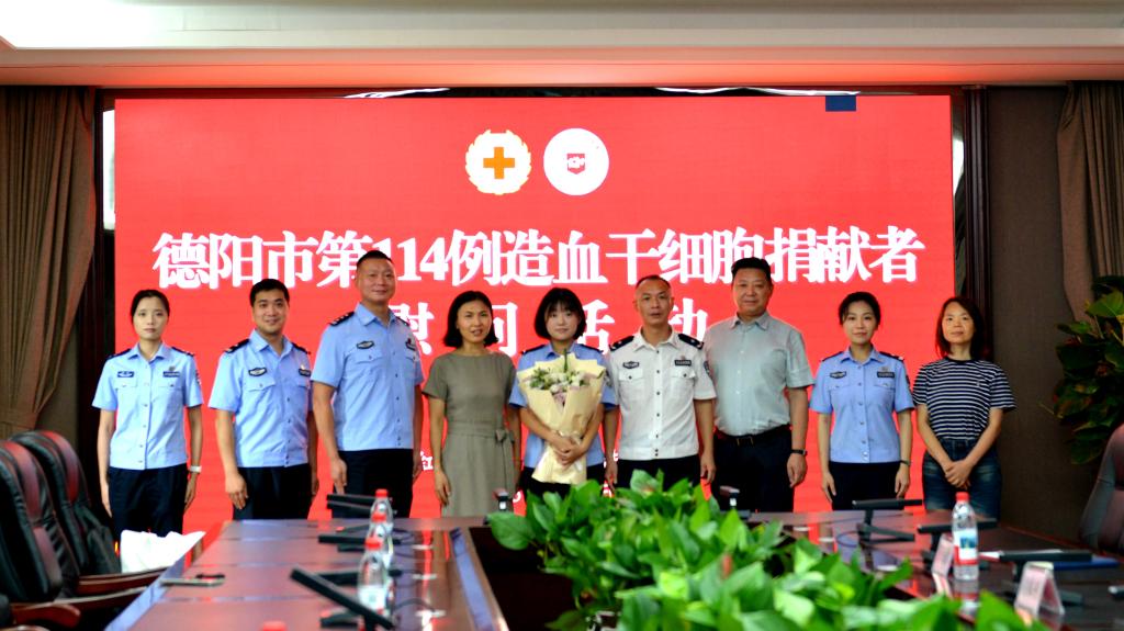 2025年7月8日上午,德阳市第114例造血干细胞捐献者慰问活动在我院举行。市红十字会党组书记、常务副会长唐发初,学院党委委员、副院长、红十字会会长张兴荣出席活动,并向学院刑事司法系捐献志愿者刘钰曦同学表示慰问。