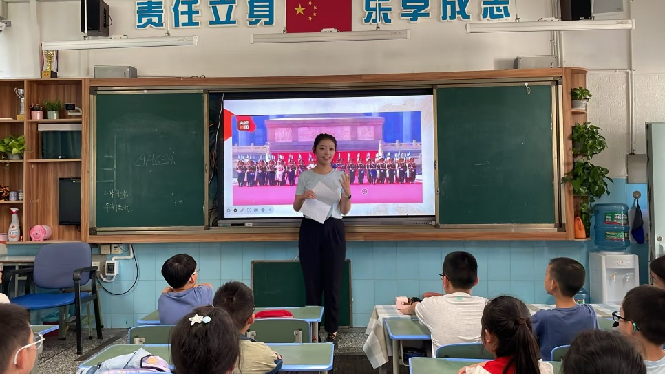 互动环节,“未来的和平世界是什么模样”的提问点燃同学们的热情。同学们踊跃举手,化身“和平小画家”,用“没有战争,只有欢声笑语”“祖国科技发达,人民安居乐业”等话语,描绘对和平的向往与对祖国的美好期许。
