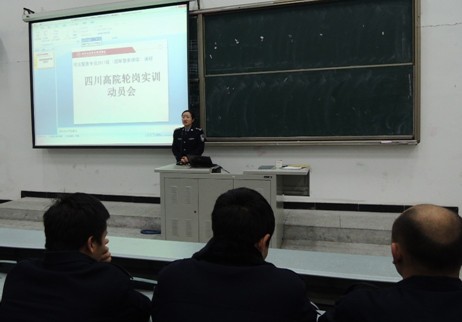 廖主任介绍顶岗实训的基本情况 优秀实习生代表发言 2012年12月11日下午,法学系在北校区101多媒体教室召开司法警务专业2011级学生赴四川省高级人民法院顶岗实训动员会。法学系副主任廖鸿玲、行业实务专家原德...