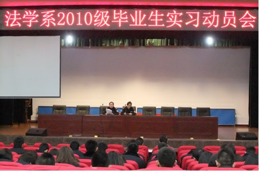 向实践学习:珍惜,用心,用情,用行动 ——刑事司法系召开2010级学生顶岗实习动员会 2012年12月26日下午,刑事司法系召开2010级学生顶岗实习动员大会,来自刑事执行、心理咨询和行政执行三个专业近200名学生和中...