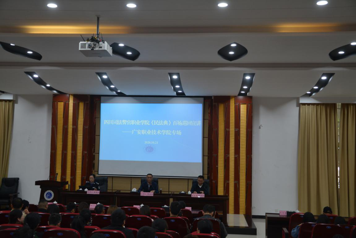 为深入学习贯彻习近平总书记关于宣传、推进、保障民法典实施的重要指示精神,按照《四川省学习宣传〈中华人民共和国民法典〉实施方案》的要求和省司法厅的安排部署,学院《民法典》百场巡回宣讲”活动由刘世模副院长带队,一行5人分别于10月20日、21日、22日三天走进巴中、广安、南充三地,为三地基层司法局、巴中监狱、川中监狱、广安职业技术学院等单位巡回开展民法典宣讲。