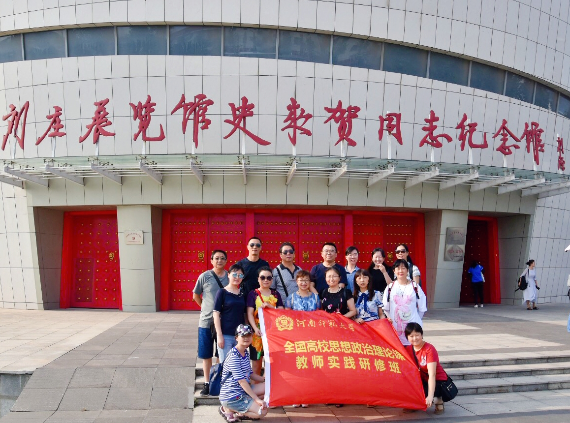 七月的中原大地烈日杲杲、流金烁石。为深入学习贯彻习近平新时代中国特色社会主义思想和党的十九大精神,深入贯彻落实习近平总书记在全国学校思想政治理论课教师座谈会上的重要讲话精神,按照《普通高校思政课建设体系创新计划》、《新时代高校思政课教学工作基本要求》等文件要求,我院思政部教师、各系部优秀教师代表在刘世模副院长的带领下于2019年7月17日至7月23日前往教育部全国高校思政课教师社会实践研修基地——河南师范大学马克思主义学院与来自广西、南京、四川等省内外高校的思政课教师共同开展暑期实践研修。