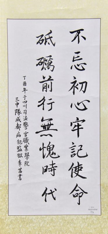 成都病犯监狱的李茜同学以《不忘初心牢记使命,砥砺前行无愧时代远》的楷书