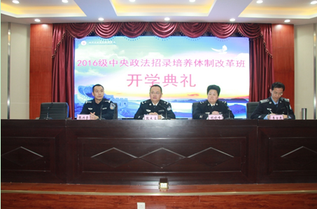 2017年4月,我院迎来了来自四川、甘肃的2016级中央政法干警招录培养机制改革班103名学员。为了增强学员们的归属感,加强其对学院学习、生活的认识,帮助其做好自己两年警校生活的人生规划,2017年4月6日上午,我院2016级政法干警体制改革试点班开学典礼在学术报告厅举行。