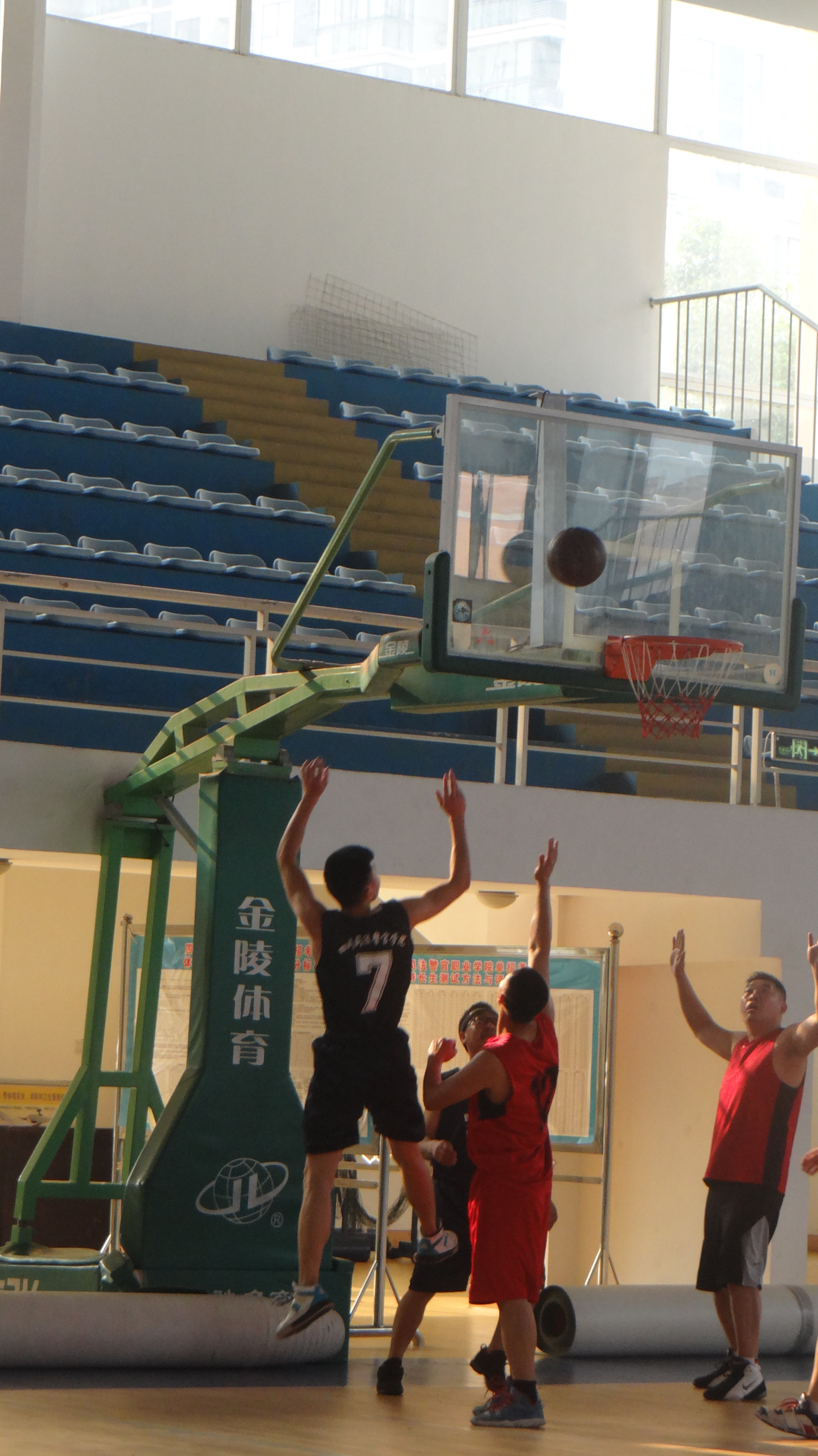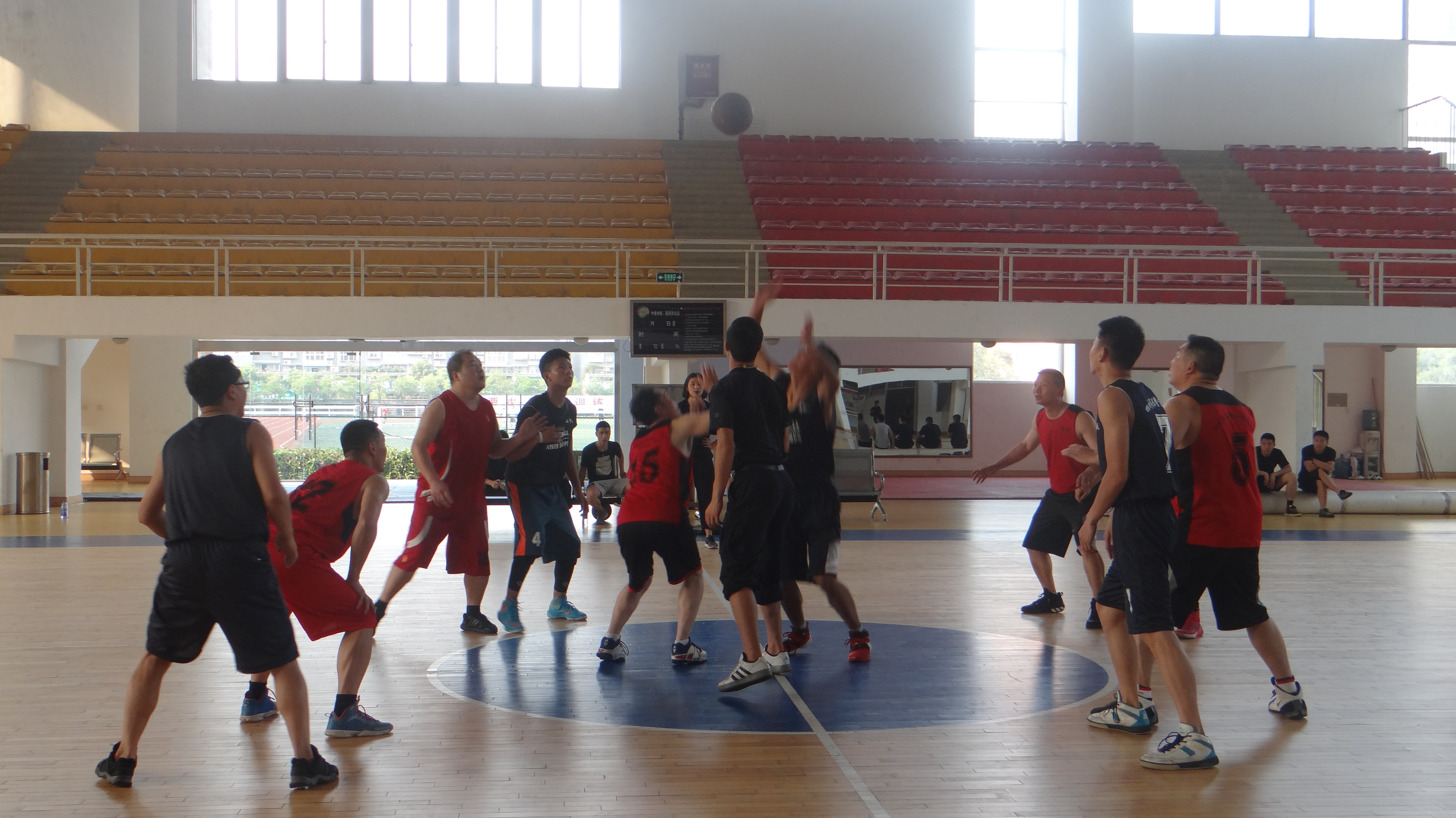 5月10日下午,学院教工篮球队与此次学生篮球比赛冠军队,在体育馆举行了一场篮球友谊赛。