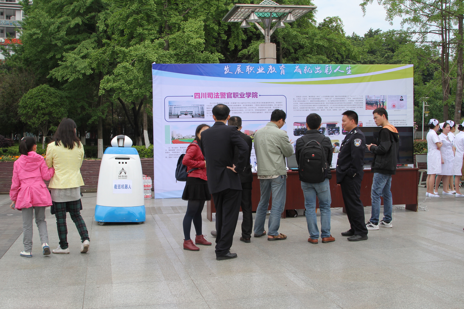 教务处、侦查系、法学系、学院合作单位阿泰因公司相关人员及50名学生代表参加了启动仪式。学院以展板的形式从办学理念、校企合作、教育教学成果、社会服务等方面展示了集中职业教育成果。同时还进行了职业教育成果现场演示,合作单位阿泰因公司演示了与学院合作开发的夜巡机器人工作原理,侦查系演示了学院自行开发的家庭防盗联网报警平台,居家养老生理监测平台,法学系演示了警务化管理成果。