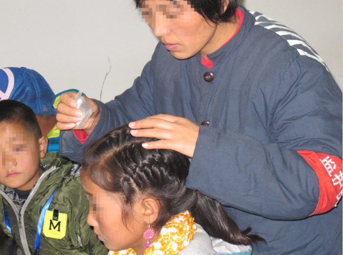 (服刑人员阿吉认真地为女儿梳头)