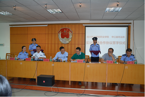2014年9月17日在中江县司法局举行了学院与中江县司法局战略合作协议签字暨教学练战“实践教学基地”授牌仪式。出席仪式的有学院副院长张大立、中江县副县长何其胜、中江县司法局局长邓兴龙、学院部分教师、中江县各乡镇司法所所长以及首批赴中江司法局参加“教学练战”一体化活动的学员。