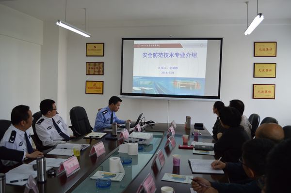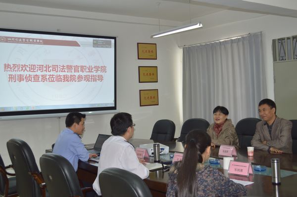 4月28日,河北司法警官职业学院刑事侦查系系主任张建新一行2人到学院侦查系就安全防范技术、刑事侦查技术的专业建设情况进行了考察交流并举行了座谈会。会后参观了两个专业的实验实训室。