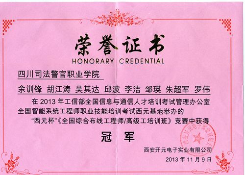 本次培训以综合布线国家标准为依据,采用世界技能大赛和国赛指定品牌西元综合布线设备,设计有住宅信息化单元安装、铜缆跳线制作与模块端接、永久链路制作、光纤熔接(冷接)、故障检测与分析和工程蓝图折叠竞赛等六个实训项目十个竞赛单元。培训过程全部采取边讲边做边赛的方式进行,在住宅信息化单元安装和永久链路制作两个赛项中,我们学院都获得了团体冠军,另外,在综合布线工程蓝图折叠竞赛中,学院余训锋老师获得冠军。在最后的职业技能鉴定考核中,我院教师均考取了人社部《中华人民共和国职业资格证书综合布线高级技能证书》、工信部《全国智能系统工程师职业技能证书》和《西元网络综合布线技术认证工程师培训证书》。