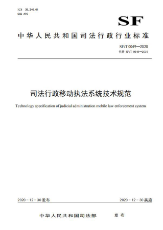 2020年12月30日,由学院作为起草单位、学院教师作为主要起草人,参与编制的中华人民共和国司法行政行业标准《司法行政移动执法系统技术规范(SF/T 0049-2020)》发布并付诸实施。