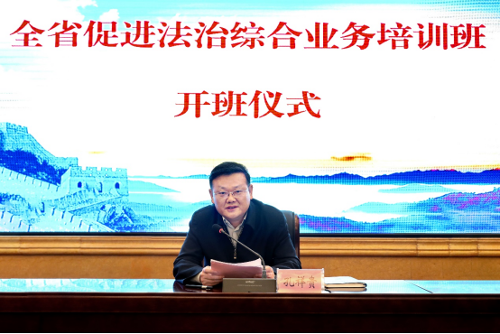 孔祥贵副厅长作开班动员讲话,他强调,本次培训作为今年厅机关的第一个培训班,相较于以往课程的设置更偏向务实,并对如何做好人民参与和促进法治工作向各学员提出三点意见:一是正确理解更名人民参与和促进法治处(科)的深远考量。将基层处(科)更名为人民参与和促进法治处科,是贯彻落实以人民为中心思想的集中体现;是司法行政机关深入学习贯彻习近平法治思想、推动国家治理体系和治理能力现代化的务实之举;是司法行政机关始终坚持党的绝对领导、加强党的长期执政能力建设的必然要求。二是深刻认识人民参与和促进法治建设工作的形势任务。要认识到当前人民参与和促进法治的新形势;要深刻认识到人民对参与和促进法治工作的新期待;同时也要认识到目前人民参与和促进法治工作的短板。三是如何做好当前人民参与和促进法治建设的有关工作。需要从观念上进行改变,强调突出重点,以服务群众为根本,以党为中心,强化统筹协调,加强能力建设,做到不管形势如何变化,都能游刃有余。在讲话的最后,孔祥贵副厅长对参训学员表达了殷切期望,希望全体学员在之后能为建设更高水平的平安四川、法治四川作出新的更大贡献。