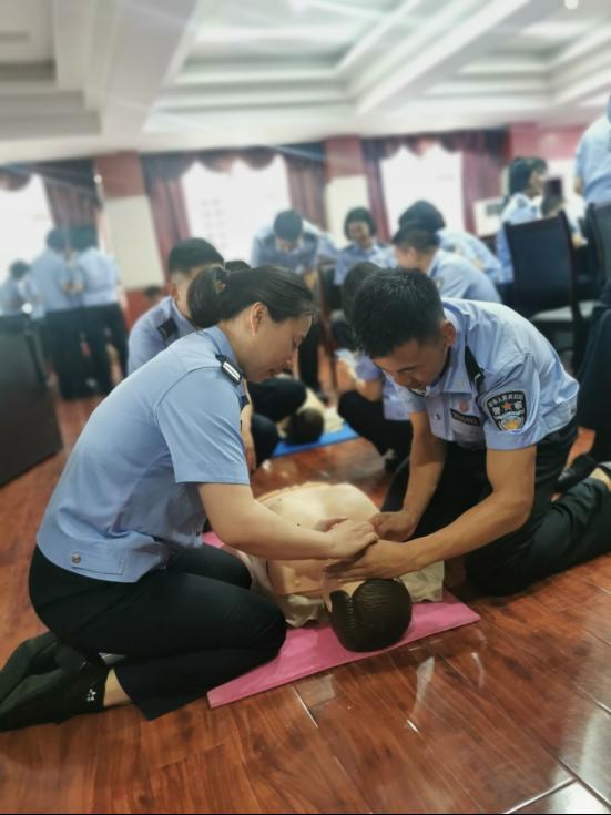 启动仪式结束后举行了安全员培训。全院12个中队的老师、学生安全员和学生教官120多人参加了为期两天的培训。培训中,市红十字会、安德顺消防维保公司的讲师通过理论讲授、示范指导及实操练习等形式,为参训学员开展了心肺复苏、创伤救护、灭火器材使用、应急逃生技能等内容的培训。通过理论考试加实操考核,全部学员通过考核,成为了合格的中国红十字救护员。