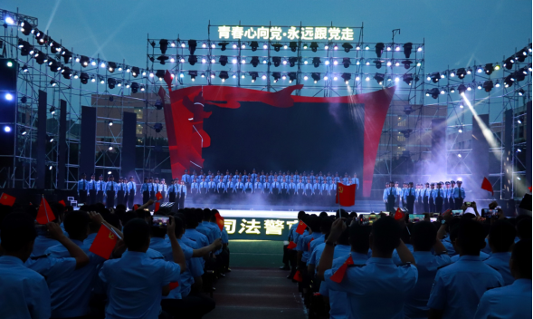 6月23日晚上8时,学院隆重举行“青春心向党 永远跟党走”——庆祝建党100周年文艺晚会暨第三届大学生校园文化艺术节闭幕式。省司法厅机关党委书记潘奇峰,省司法厅原副厅长、省公证协会会长扎柯,省律师协会会长程守太,省司法厅二级巡视员、装备财务保障处处长夏磊,省监狱管理局机关党委书记苟宗富,省戒毒管理局副局长赵敏等领导出席晚会。