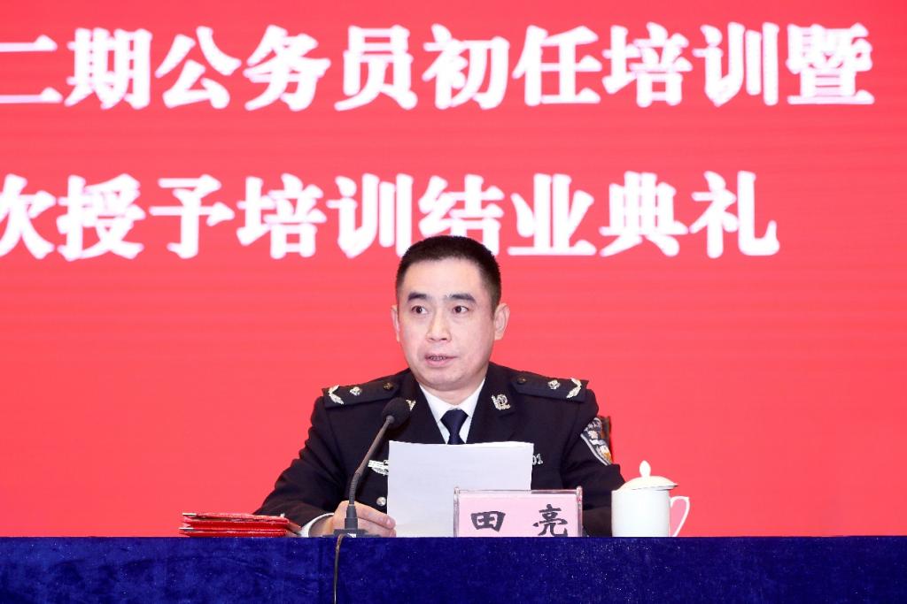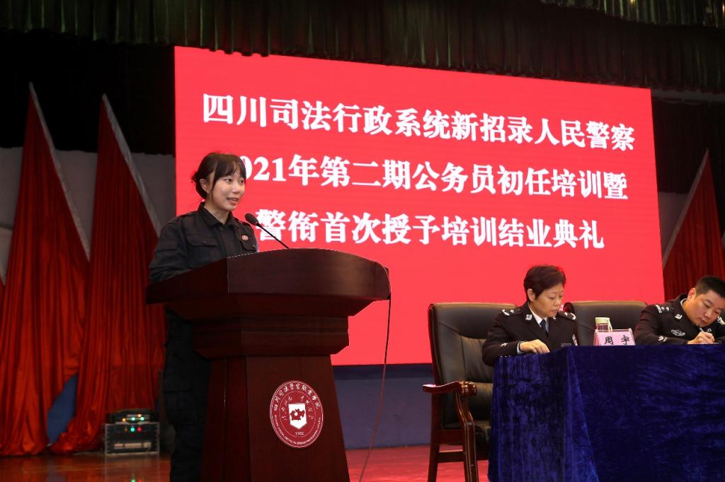 12月9日上午,四川省司法行政系统新招录人民警察2021年度第二期公务员初任培训暨警衔首次授予培训结业典礼在四川司法警官职业学院举行。省司法厅党委委员、政治部(警务部)主任任立新出席会议并作了重要讲话,四川司法警官职业学院党委书记田亮宣读了表彰决定。省司法厅人事警务处、省监狱管理局、省戒毒局政治部领导、学院培训处管理老师及283名新警学员参加典礼。