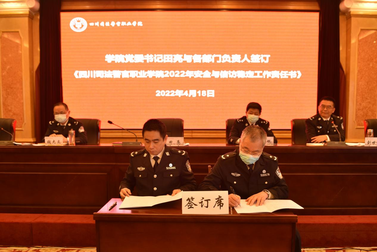 会上,党委书记田亮与部门负责人签订了《四川司法警官职业学院2022年安全与信访稳定工作责任书》。