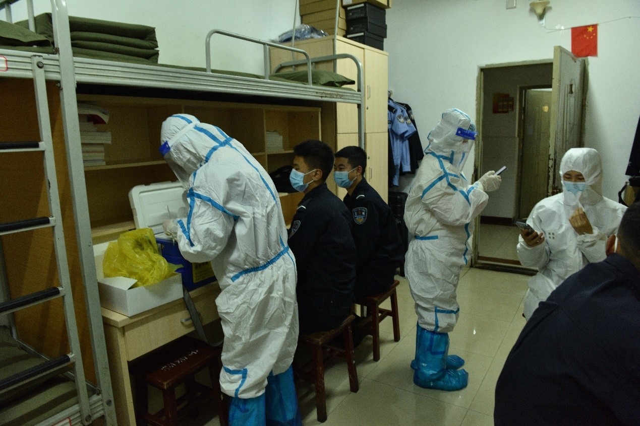 “报告中队长:……”“防控办:我中队北四109寝室学生栗某某刚接到疾控中心电话通知,昨天做的核酸检测结果为阳性!……”“报告:……”接到防控办报告后,现场指挥张大立副院长迅即向学院疫情防控应急指挥部报告情况,并根据总指挥田亮书记的指示,宣布立即启动应急响应,各应急处置小组迅速到位。疫情就是命令,时间就是生命,从学生接到疾控中心通知,到学院应急指挥部宣布启动应急响应,10分钟内,各小组已经有条不紊地开展应急处置。各个环节都严格遵循第一时间发现、第一时间报告、第一时间处置的防控要求。