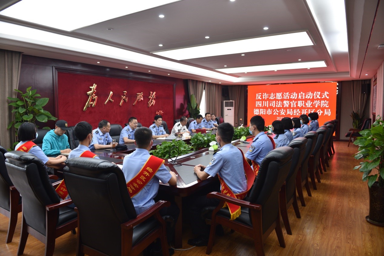 为全力打好围歼电信、网络诈骗犯罪的人民战争,共筑反诈“防火墙”,切实维护人民群众切身利益, 5月16日下午,学院举行“反诈志愿活动”启动仪式。学院副院长张大立出席仪式并讲话,德阳市公安局经开区分局龙泉山路派出所黄志鸿所长,逯朝辉教导员一行参加了启动仪式,并为我院10名反诈宣传学生志愿者颁发了聘书。