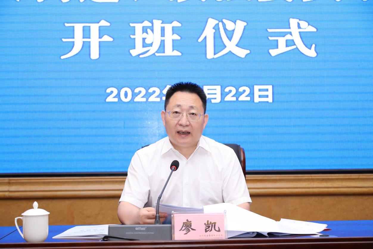 德阳市委常委、政法委书记廖凯出席开班仪式并作了重要讲话。廖书记从四个方面进行学习培训动员。一是从乡镇(街道)配备政法委员是党管政法向基层延伸的重大制度安排,必须始终坚持党对政法工作的绝对领导;二是政法委员是做好基层政法各项工作的一线总指挥,必须全力做好基层平安建设各项工作;三是政法委员是乡镇综治中心规范化建设的具体责任人,必须肩负起推动综治中心实体化、实战化运行的职能职责;四是政法委员是基层政法工作的“领头雁”,必须切实提高做好基层政法工作的能力和水平。