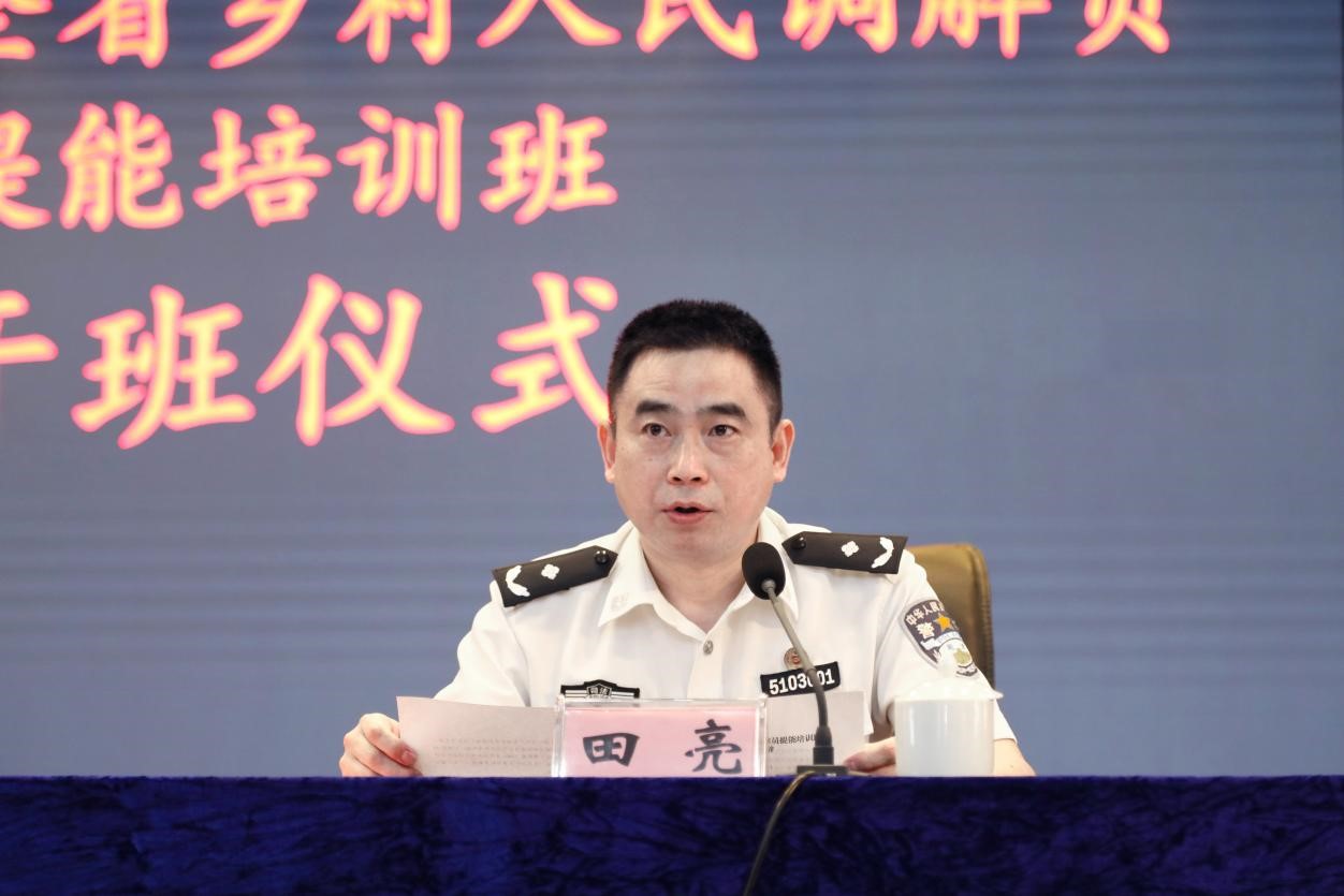 四川司法警官职业学院党委书记田亮在开班仪式上致辞,代表学院对全体参训同志表示了热烈的欢迎和诚挚的问候。田亮书记表示,学院将密切配合司法厅,尽力为大家提供优质的教育教学资源、创造良好的学习生活环境,以高效周到的服务办好本次培训班。