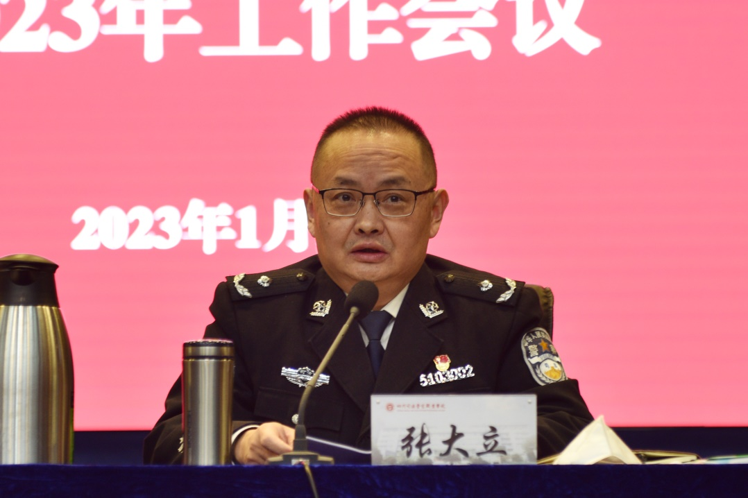 张大立指出,2023年重点抓好五项工作:一是把牢政治引领根本点。持续深入学习宣传贯彻党的二十大和省委十二届二次全会精神,严格落实意识形态工作责任制,强化宣传舆论引导;严密做好党委换届工作,深化党支部“十个标准化”工作法,努力争创省级党建工作示范高校;加强重点领域监督检查和系统治理,推动全面从严治党管警走深走实。二是把住推动发展立足点。深学悟践党的二十大关于“坚持教育优先发展”和“坚持走中国特色社会主义法治道路”的战略部署,进一步厘清司法职业教育的类型定位,积极融入法治大局和德阳市经济指标“重返全省前三”发展目标,细化分解工作任务,层层抓好贯彻落实,奋力推动实现学院建设发展的“第三次跨越”。三是把好立德树人着力点。稳步扩大招生规模,拓宽就业渠道,做优做大定向招录;构建“警、法、安、信”四大专业群,深化课堂革命和教材改革,扎实推进“双高”建设进度,做好诊改复核验收准备工作;把人才培养作为核心,突出思政育人、服务育人、文化育人,全方位涵养学生的警察意识和职业精神。四是把准补齐短板切入点。加大编制内部挖潜和师资外部引入力度,深化队伍教育整顿和“忠诚铸魂、铁纪担当”专项活动成果,落实从优待警各项政策;积极参与川渝司法行政合作实务项目研究,大力构建跨专业学科、跨行业领域、跨地域界限的继续教育体系;深化校企(行)合作,创新育人机制,不断提升人才培养质量。五是把稳基础保障支撑点。推进四川司法产教融合实训基地项目建设,严防廉政风险,力争“十四五”末完成新校区全部建设任务;深化依法治校,强化财务保障,不断提升服务质效;紧盯枪弹、消防、食品等重点领域,完善安防体系,狠抓责任落实。