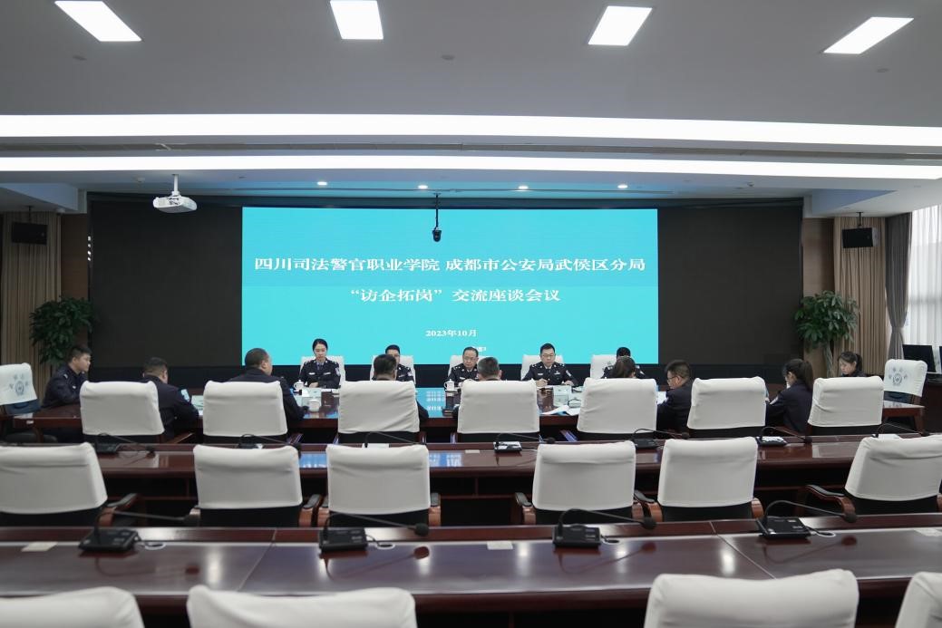 19日下午,张大立院长一行深入成都市武侯区公安分局进行“访企拓岗”并举行实习就业基地授牌仪式。座谈交流中,成都市武侯区局领导介绍了分局队伍建设、职业发展等方面情况,充分肯定了学院毕业生的素质和能力,并深化校局合作共建,丰富拓展合作领域提出良好意见建议。张大立院长介绍了学院发展规划、专业课程、师资队伍、学生就业等工作情况,对分局长期以来在毕业生招录、学生实训等方面工作的支持表示感谢,表示将认真研究相关意见建议,进一步加强在毕业生招录、实习实训、干警培训等领域合作,以就业为导向,奋力推动校局合作共建再上新台阶。武侯区公安分局党委副书记、政委吴昊,党委委员、政治处主任潘峰参加座谈。会议还举行了“四川司法警官职业学院实习就业基地”授牌仪式。