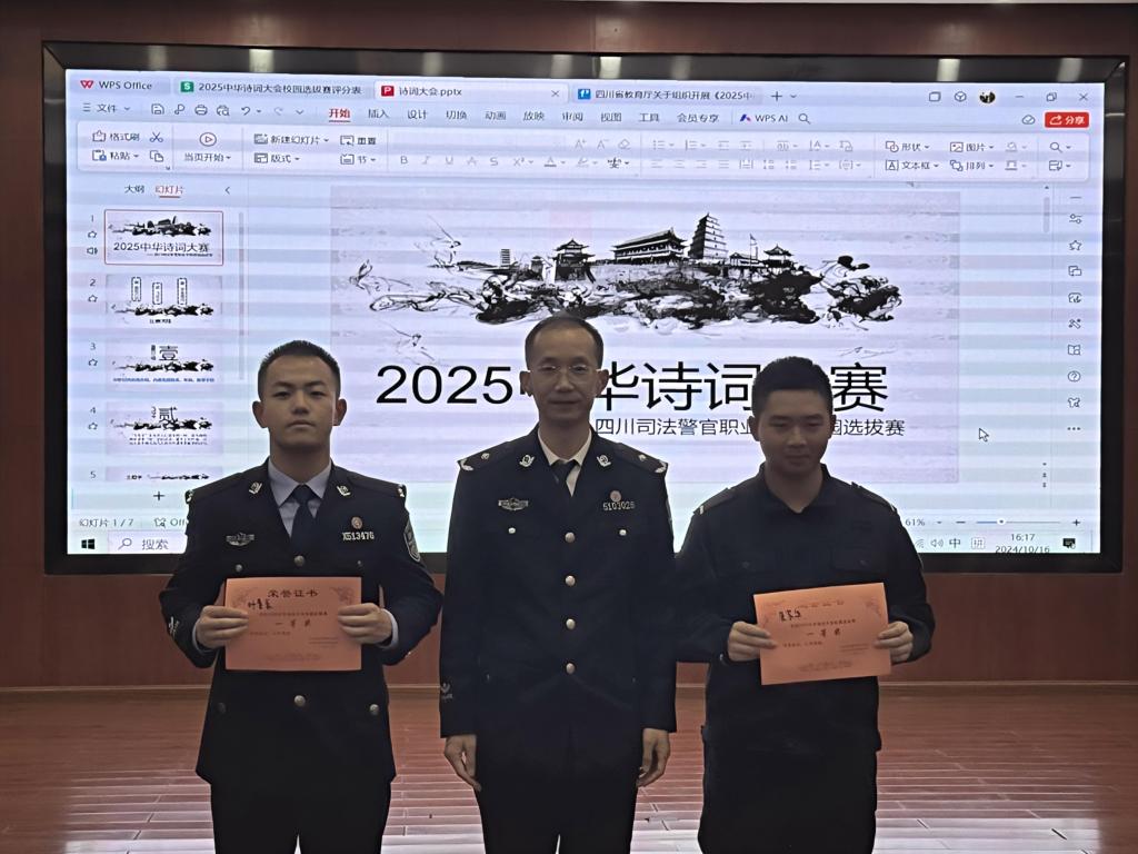 此次选拔赛吸引了来自各个专业、不同年级的学生以及对诗词满怀热忱的教师积极参与,3名教师代表以及各系分别推荐的两名选手参加校园选拔赛角逐。比赛设置了自我介绍、飞花令和评委提问三个环节。选手们在各环节中表现出色,评委们依据严格标准公正评分。经过紧张激烈的角逐,最终来自刑事侦查技术专业的叶春豪和来自司法信息系大数据技术的康家华两位同学脱颖而出,他们将代表学校参加后续比赛。