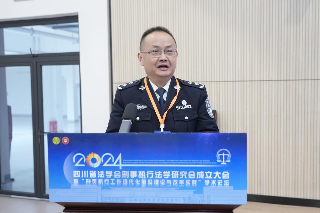 田亮在致欢迎辞中表示,四川司法警官职业学院长期致力于刑事执行法学研究,四川省刑事执行法学研究会的成立,是顺应时代潮流、回应实践需求的必然产物,也是推动学院迈向更高水平的重大举措。学院将全力支持、保障研究会各项工作,努力为大家打造一个交流思想、碰撞智慧、务实管用的学术平台,与社会各界一起共同推进四川省刑事执行法学研究事业高质量发展。