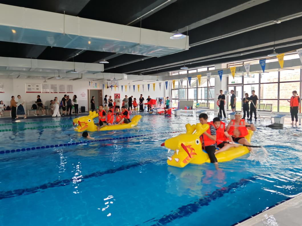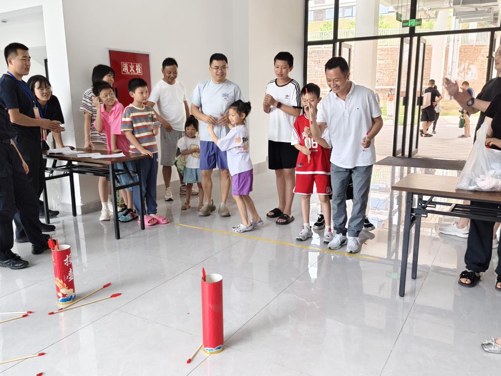 民俗体验活动在游泳馆掀起欢乐高潮。家长与孩子们化身活力满满的 “龙舟队”,随着裁判一声令下,一艘艘充气龙舟如离弦之箭,在水面上疾驰。大家喊着响亮的口号,齐心协力挥动船桨,你追我赶,冲向终点。岸边的加油助威声此起彼伏,激荡着热烈的竞技氛围。投壶比赛现场同样趣味横生,家长和孩子们手持箭矢,屏气凝神、专注瞄准,奋力将箭矢投向壶口。成功投中的瞬间,欢呼喝彩声四起;即便未能命中,大家也毫不气馁,迅速调整姿势,继续挑战。