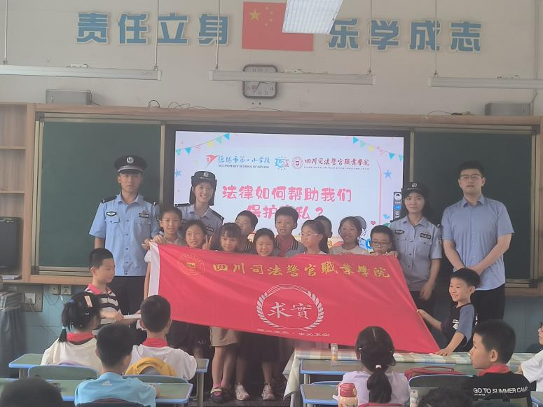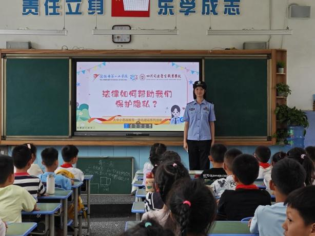 为深入贯彻落实习近平总书记关于“统筹推进大中小学思政课一体化建设”的重要指示精神。2025年5月23日,四川司法警官职业学院与德阳市第一小学联合开展“我的隐私,我们守护”主题队会活动。学院求实学社的同学与乐知二班的师生们共同完成了一堂别开生面的法治启蒙课。