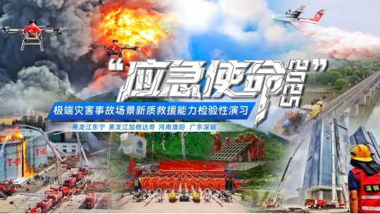 6月24日上午,由国家防灾减灾救灾委员会、国务院安全生产委员会主办,应急管理部、工业和信息化部、中央广播电视总台、黑龙江省政府联合承办的“应急使命·2025”极端灾害事故场景新质救援能力检验性演习在黑龙江省东宁市、大兴安岭地区和河南省濮阳市、广东省深圳市举行。此次演习以研究破解极端灾害事故应急救援难题为牵引,模拟极端灾害事故场景展开,突出极端性、专业性和实战性,聚焦推动新质救援能力转化为新质战斗力,提升极端事故灾害场景下应急救援能力。