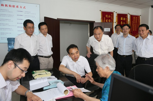 8月8日上午,省委常委、组织部部长范锐平一行到省司法厅调研指导党的群众路线教育实践活动。范锐平部长一行实地视察了省法律援助中心受理大厅,与值班律师和办事群众现场交流,观看了省司法厅群众路线教育实践活动展板及服务群众“八件实事”电视汇报短片。范部长对司法系统自上而下开展学习、找准问题,深入推进服务群众“八件实事”,扎实开展党的群众路线教育实践活动给予了充分肯定,希望司法厅切实加强班子队伍建设,继续办好实事,提高群众满意度。 省委组织部副部长戴允康、省委教育实践活动第30督导组组长史志伦陪同调研。