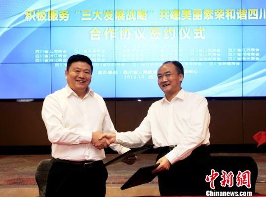 与23家驻川省级商会代表签署合作协议现场。 安源 摄
