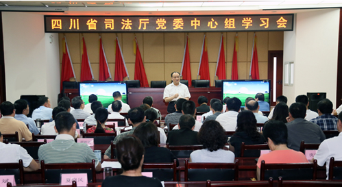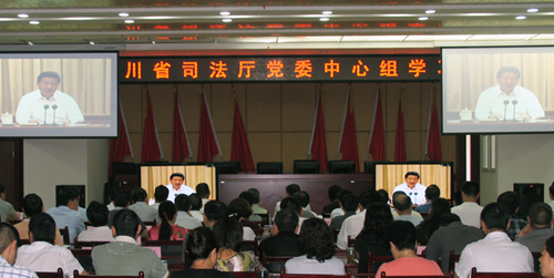 7月16日,省司法厅党委召开中心组学习扩大会议。会议集中收看了习近平总书记在党的群众路线教育实践活动工作会上的讲话视频,省司法厅党委书记、厅长李仲彬就深入开展党的群众路线教育实践活动、切实整治“四风”问题谈了学习体会。省司法厅党委班子成员,厅机关副处级以上干部和省监狱管理局、省戒毒局、四川司法警官职业学院主要负责同志参加了学习。