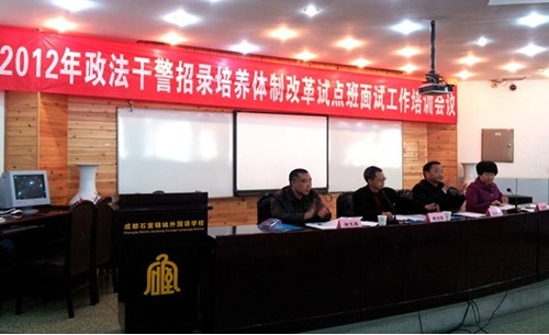 1月17日,全省司法行政系统监狱单位2012年政法干警招录培养体制改革试点班面试工作在成都石室锦城外国语学校如期进行,共计60名考生参加面试和体能测试。省公务员局考录处干伟处长亲临面试考区巡视督导,省司法厅党委委员、政法部主任沈华伦亲临现场督导、检查面试和体能测试工作。