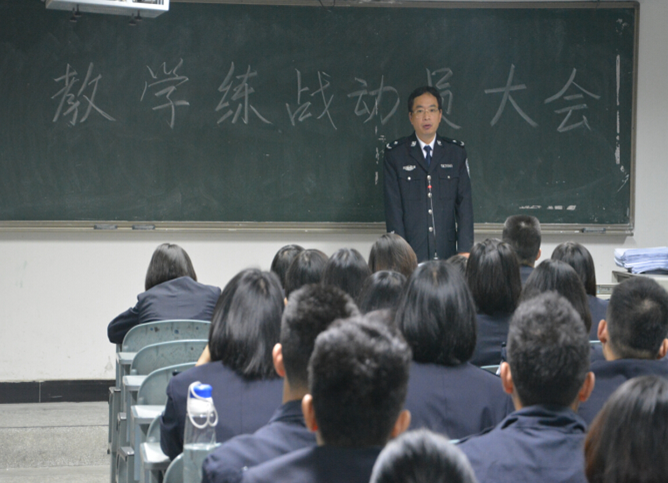 10月30日晚,由法学系主任陈太勇主持,召开了2013级9中队法律事务专业第二批97名同学参加的“教学练战”一体化实践教学动员大会。 法律事务专业教研室主任史艳利老师对“教学练战”实践教学活动作了详细具体安排...