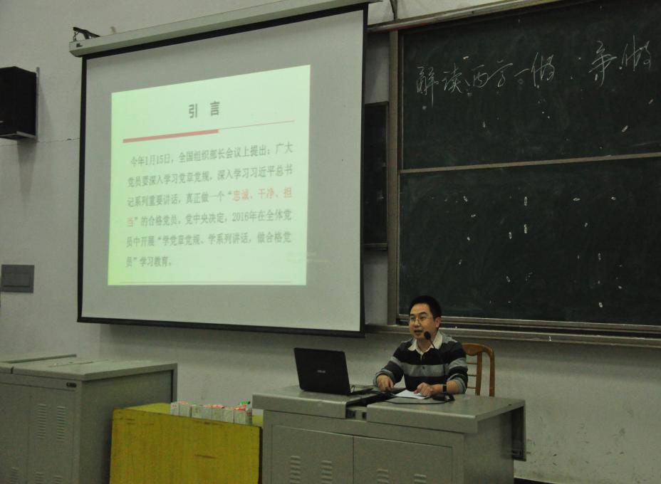 2016年4月16日,司法信息管理系党支部在北校101教室举办“解读‘两学一做’,争做优秀党员”主题讲座。讲座邀请旌阳区文明办副主任科员、创建指导股股长林崇云讲师为我系党员、预备党员、积极分子和要求进步的学...