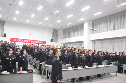 2016年12月18日下午,司法信息管理系2016级新生授装仪式在北校区101教室举行,系调研员吕春恩同志和全体中队老师参加了本次授装仪式。 授装仪式在庄严的国歌声中开始。在接受授装后,全体新生整装肃立,面对警徽...