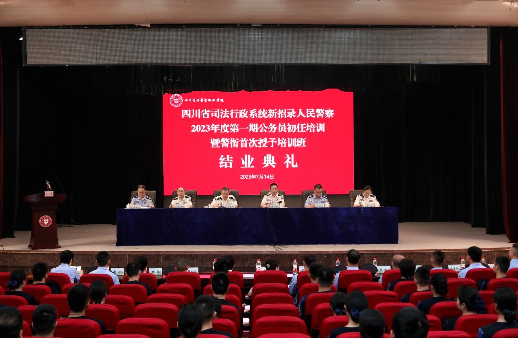 7月14日上午,伴随着激昂澎湃的国歌声,四川省司法行政系统新招录人民警察2023年度第一期公务员初任培训暨警衔首次授予培训班结业典礼在学院北校学术报告厅举行。省司法厅二级巡视员、厅政治部(警务部)副主任张...